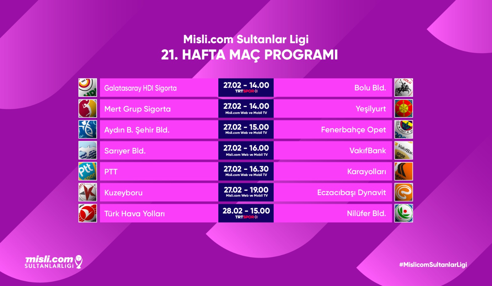 Misli.com Sultanlar Ligi’nde 21. hafta, yarın oynanacak karşılaşmalarla başlayacak.