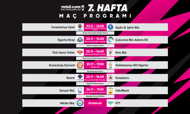 Misli.com Sultanlar Ligi’nde 7. hafta, yarın oynanacak karşılaşmalarla başlayacak.