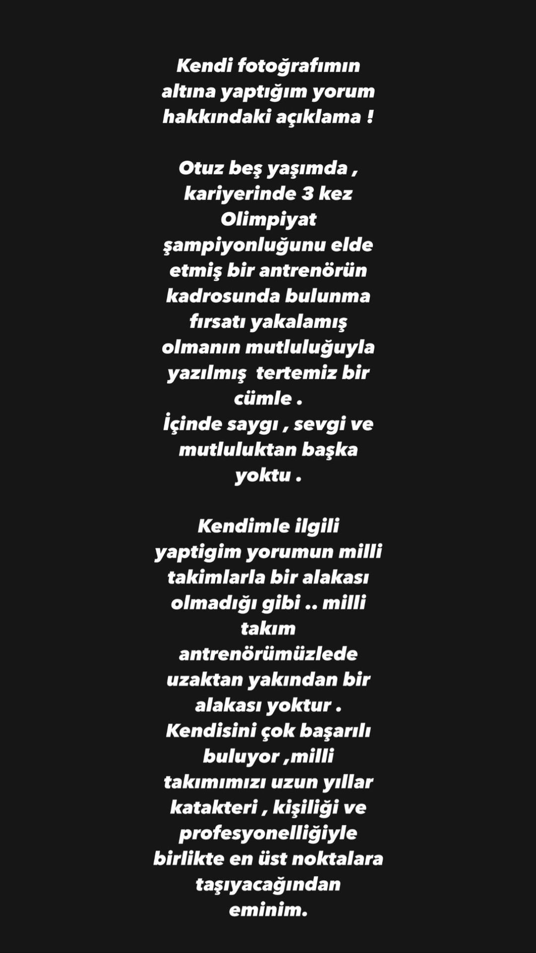 5 yıl aranın ardından Milli Takıma, 2023 FIVB Kadınlar Voleybol Milletler Ligi geniş kadrosunda yer alarak geri dönen Neriman Özsoy’un, kendisi ile ilgili yapılan bir paylaşımın altına yazdığı yorum sosyal medyada dikkat çekti. Neriman Özsoy, dikkat çeken yorumu ile ilgili olarak sosyal medya hesabından açıklamada bulundu. Neriman Özsoy’un açıklaması şöyle: