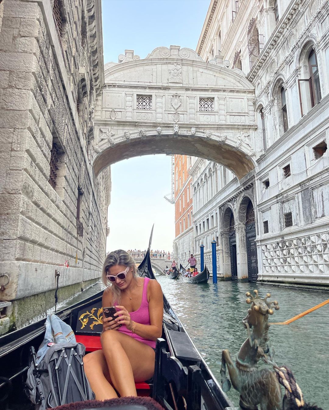 Özsoy, sosyal medya hesabından İtalya’nın gondoluyla ünlü Venedik şehrinde gondola binerken fotoğraflarını paylaştı.
