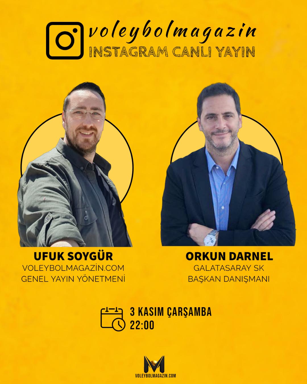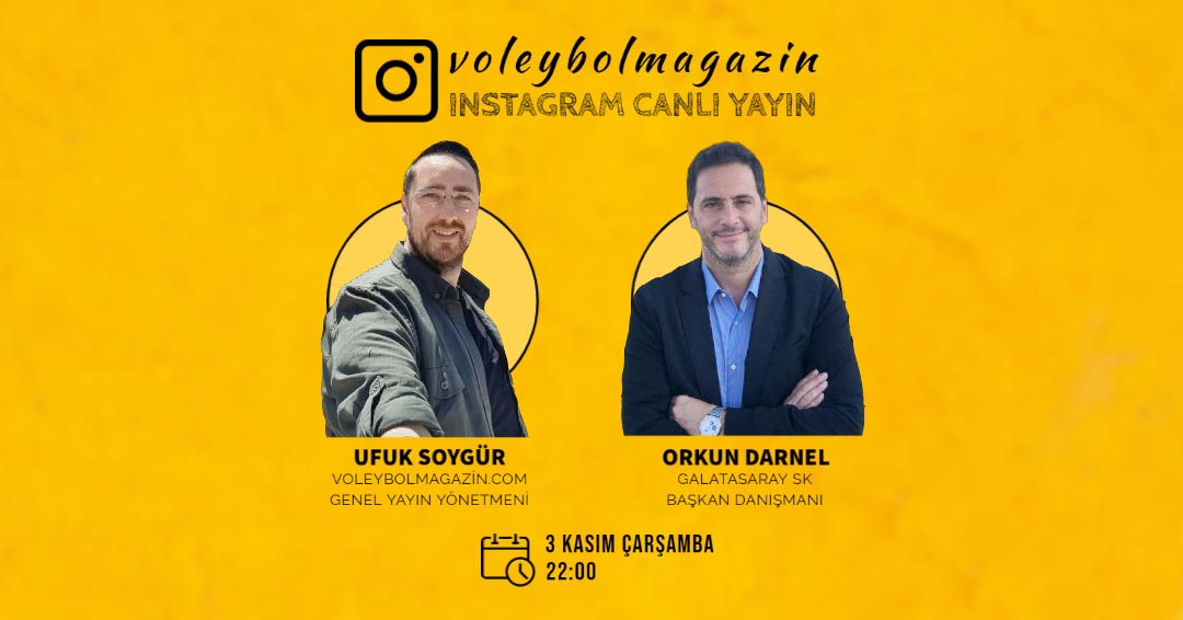Galatasaray Spor Kulübü Başkan Danışmanı Orkun Darnel, 3 Kasım Çarşamba akşamı saat 22.00’da @voleybolmagazin instagram canlı yayınına konuk olarak Ufuk Soygür’ün sorularını yanıtlayacak.