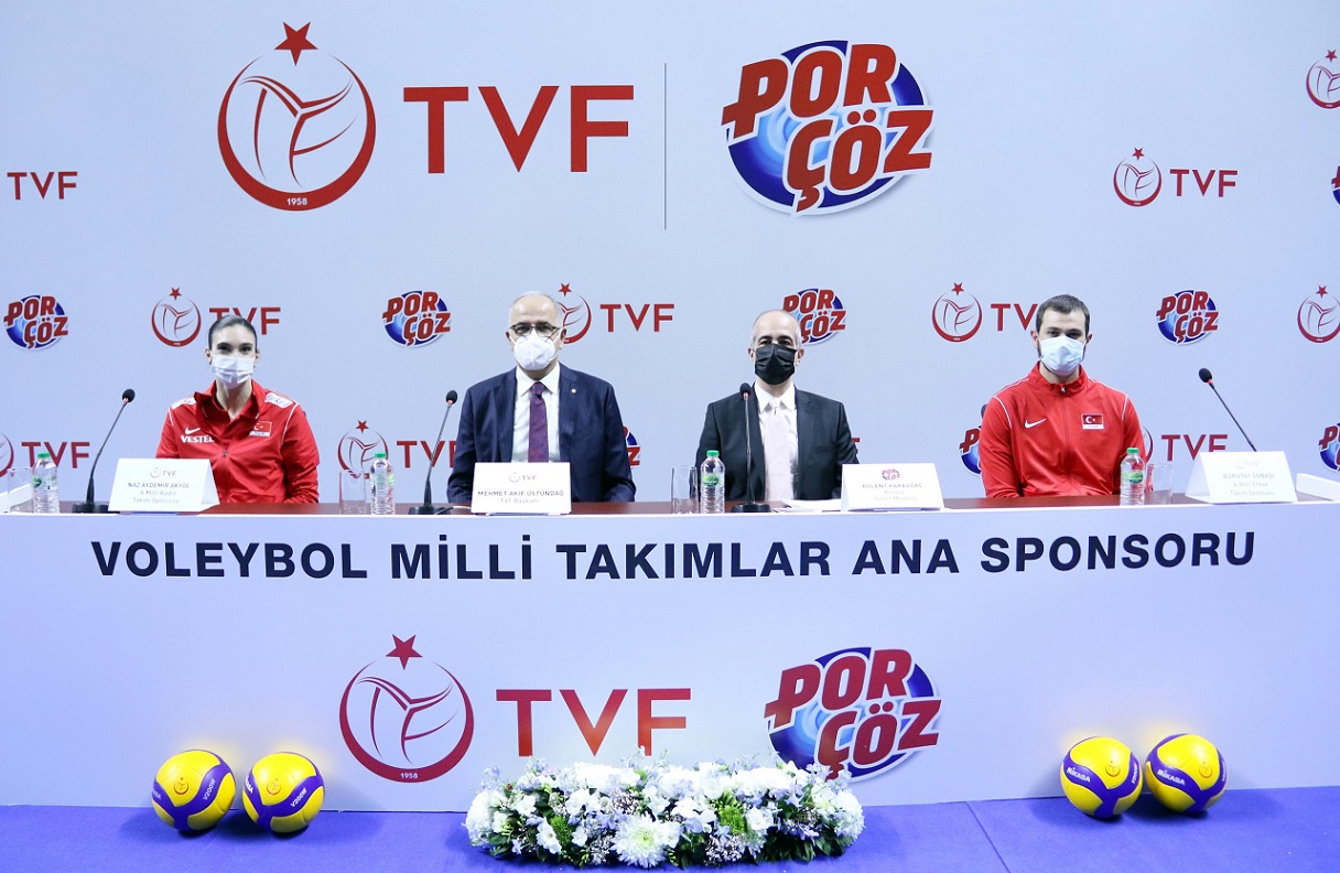 Konuşmaların ardından, TVF Başkanı Üstündağ, Türk voleyboluna göstermiş oldukları destek ve katkılardan dolayı Porçöz Genel Müdürü Bülent Karaağaç ile Porçöz Satış ve Pazarlama Direktörü Ömer Ilgın Aşık’a teşekkür plaketi, top ve adlarının yazılı olduğu milli takım forması takdim etti.