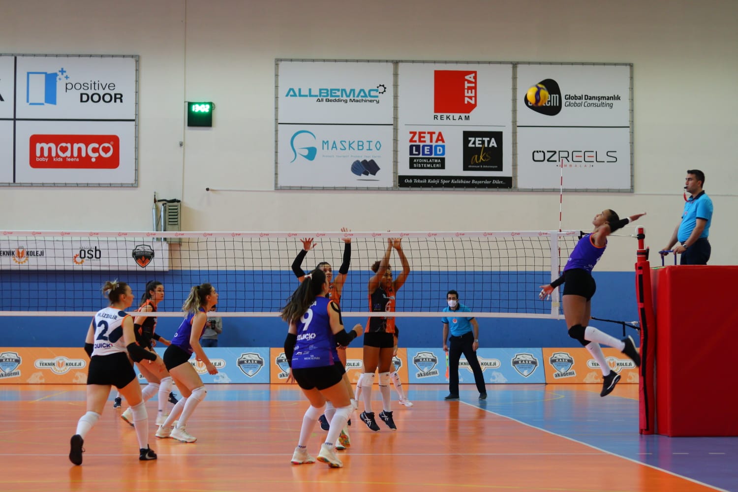 Sigorta Shop Kadınlar Voleybol 1. Ligi 21. hafta maçında Sigorta Shop, deplasmanda Turkuaz Seramik OSB Teknik Koleji’ni 3-1 (25-17, 25-10, 20-25, 25-16) mağlup etti. Osb Salonu’nda oynanan ve 1 saat 36 dakika süren mücadelede Sigorta Shop’ta Gaila 27, Ayçin 17 ve Esra Şen 12 sayıyla oynayarak galibiyeti getiren isimler oldu.