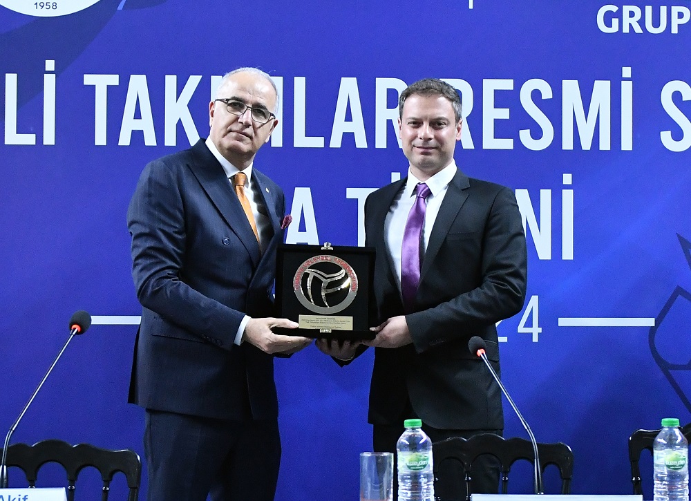 İmza töreninin sonunda TVF Başkanı Üstündağ, SMS Grup İnşaat CEO’su Onur Öngün ve Mali İşler Müdürü Semih Öztürk’e teşekkür plaketi ve milli takım forması takdim etti.