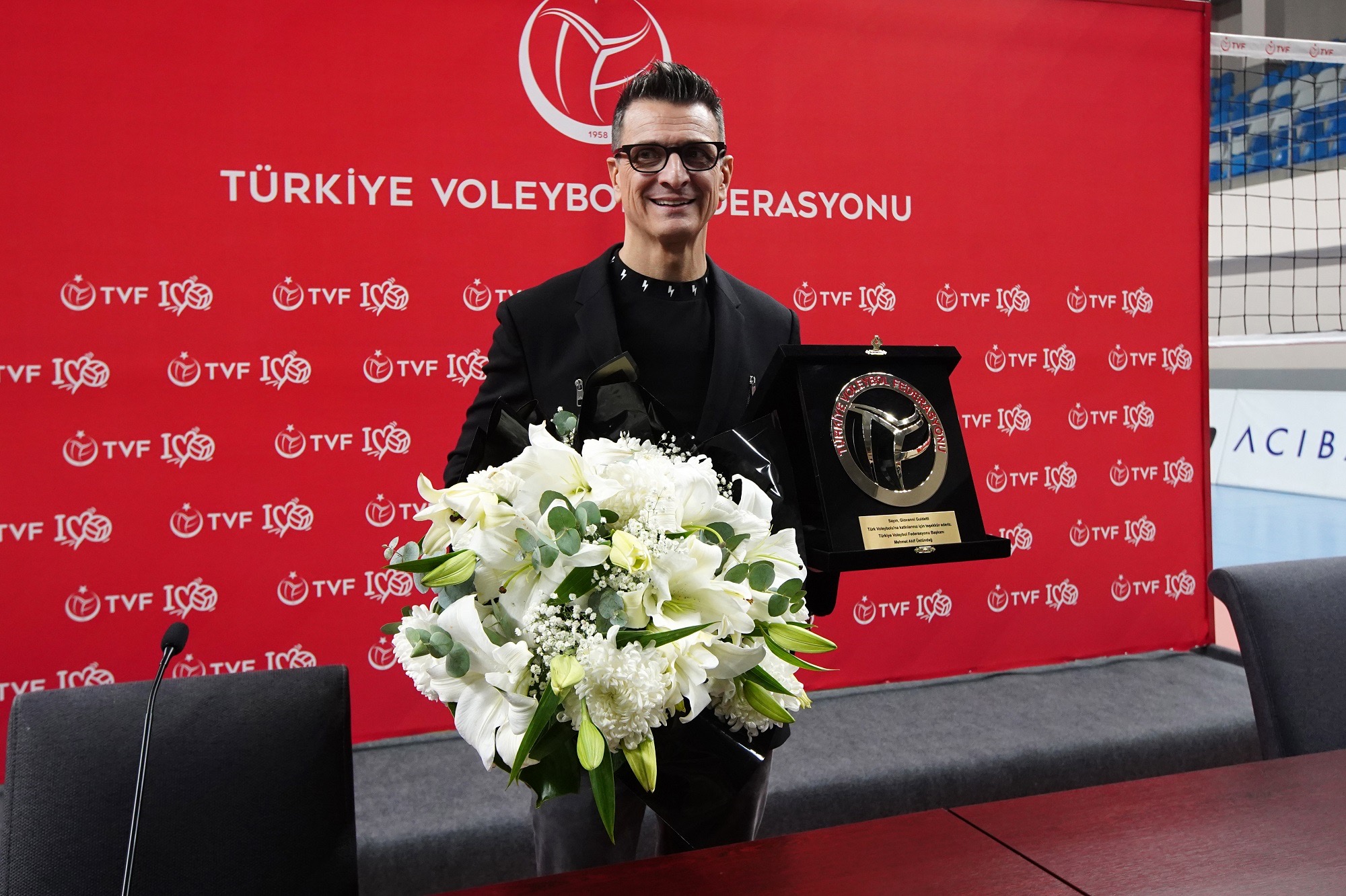 Açıklamaların ardından TVF Başkanı Mehmet Akif Üstündağ Türk voleyboluna katkılarından dolayı Giovanni Guidetti’ye teşekkür plaketi ve çiçek takdim etti.