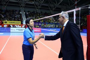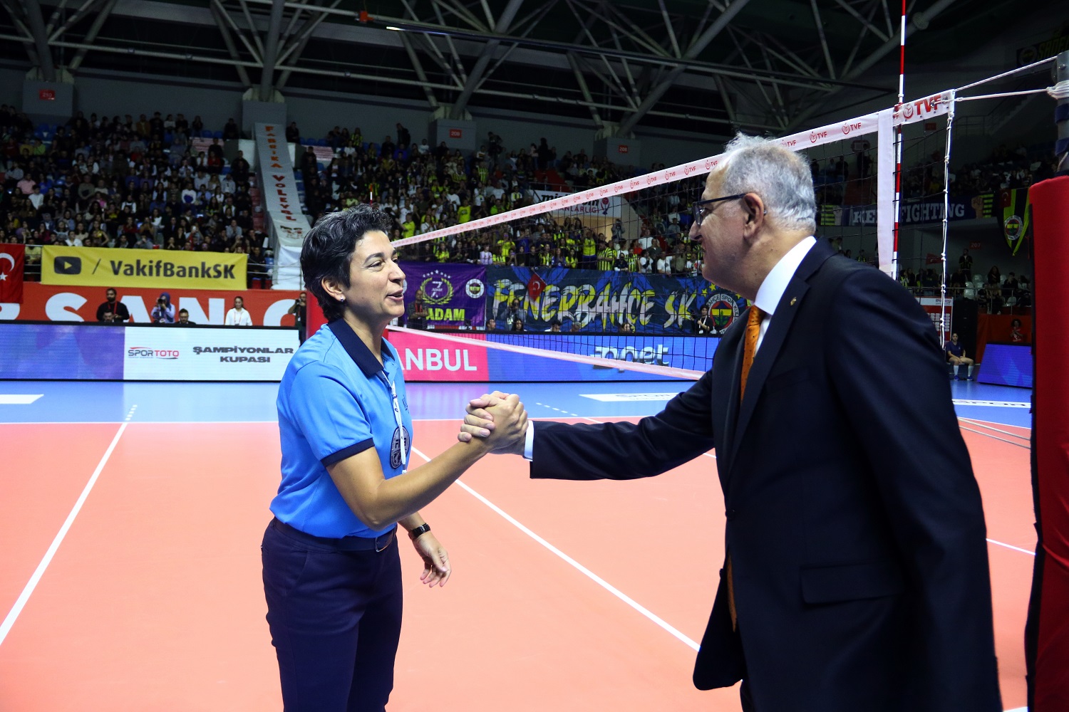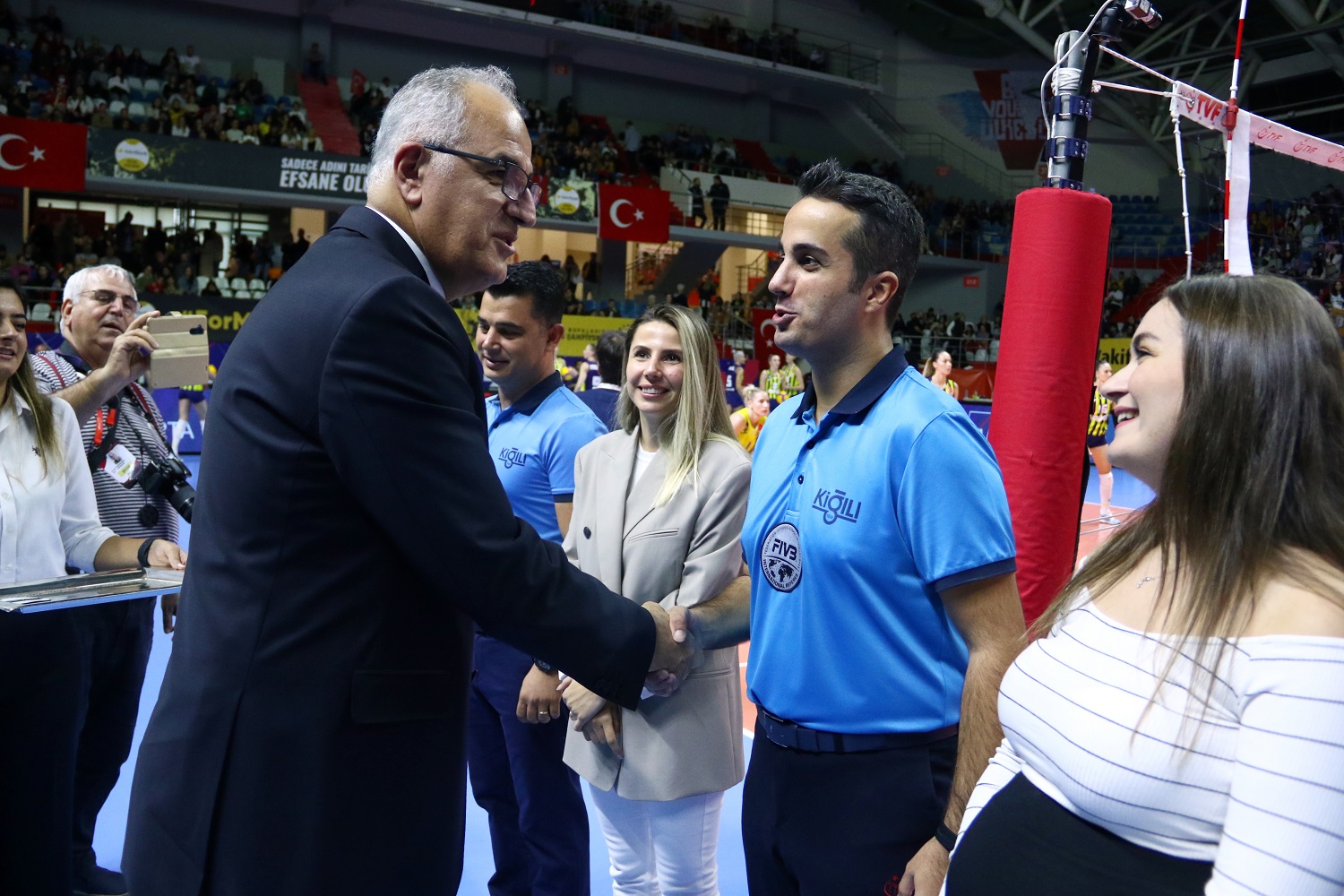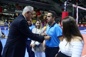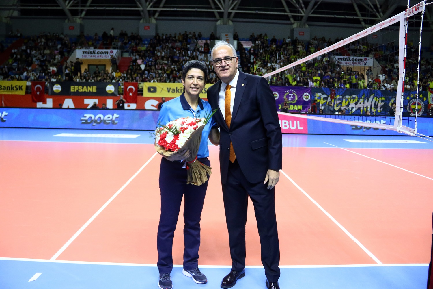 Karşılaşma öncesinde TVF Başkanı Mehmet Akif Üstündağ, Türk kadınını ve voleybol hakemliğini Avrupa ve dünya salonlarında başarıyla temsil eden Uluslararası Voleybol Hakemimiz Prof. Dr. Nurper Özbar’ı tebrik ederek çiçek takdim etti.