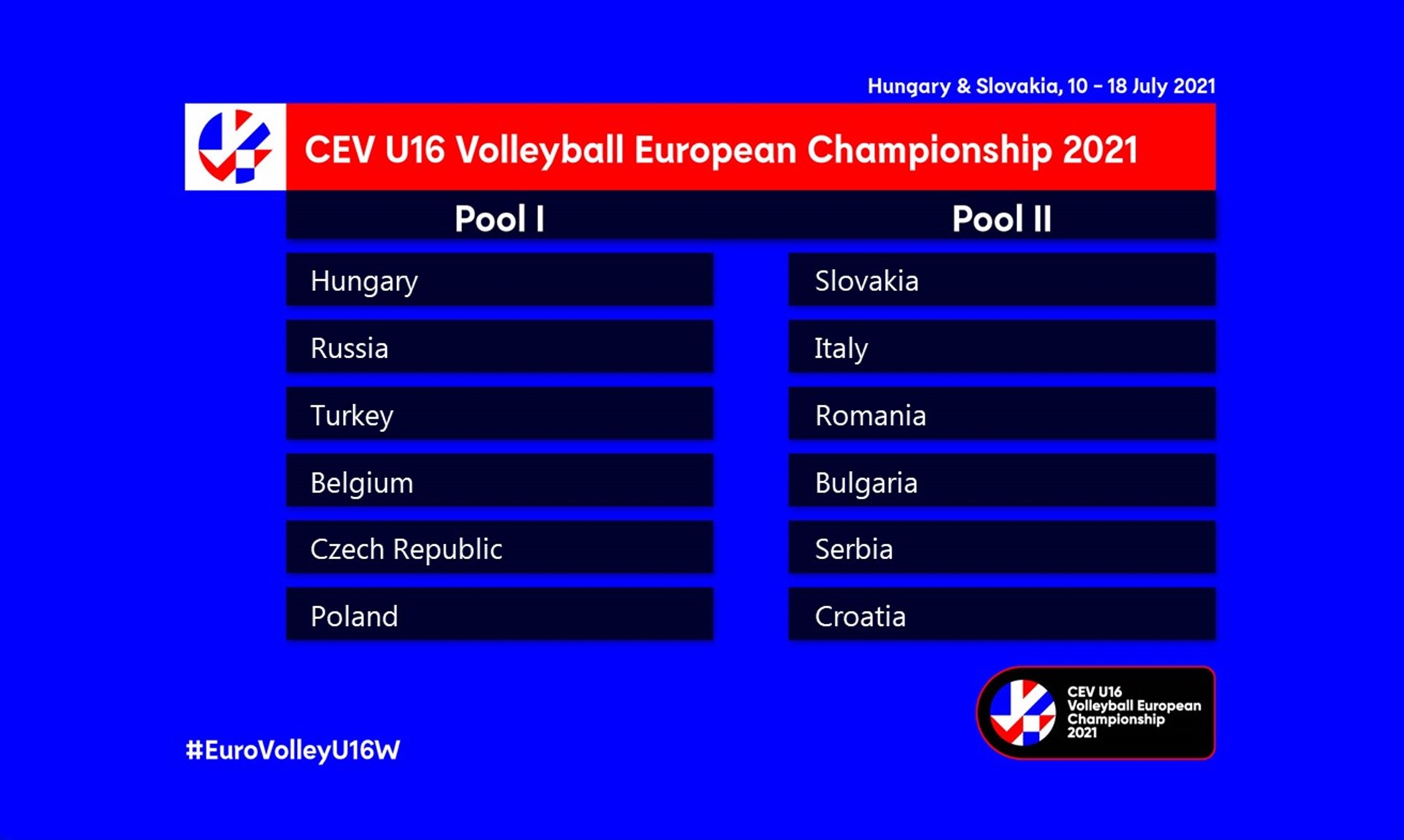 Avrupa Voleybol Konfederasyonu (CEV)’nun sitesinden yapılan açıklamada; U16 Kız Milli Takımımız, 1. grupta ev sahibi Macaristan’ın yanı sıra Rusya, Belçika, Çekya ve Polonya ile mücadele edecek.