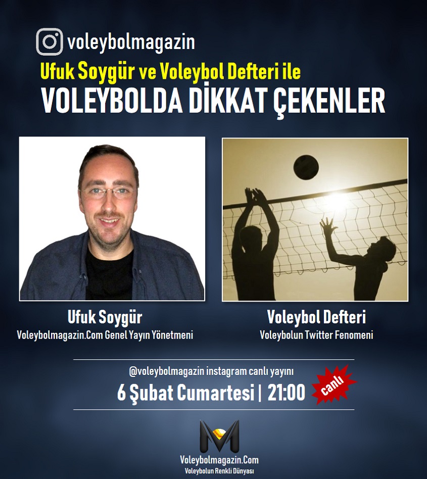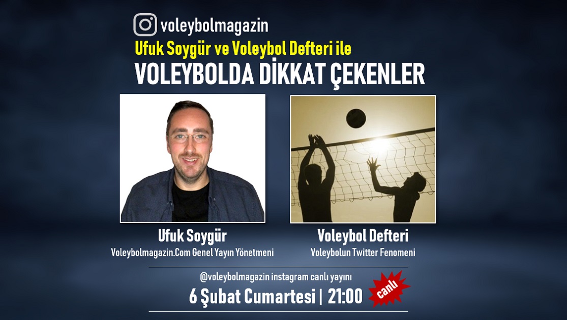 Voleybolmagazin.Com Genel Yayın Yönetmeni Ufuk Soygür ve Voleybolun Twitter Fenomeni Voleybol Defteri kullanıcı adıyla tanınan Emre Aslan’ın birlikte hazırlayıp sunacakları “Voleybolda Dikkat Çekenler” isimli instagram canlı yayın programı voleybola renk katacak!