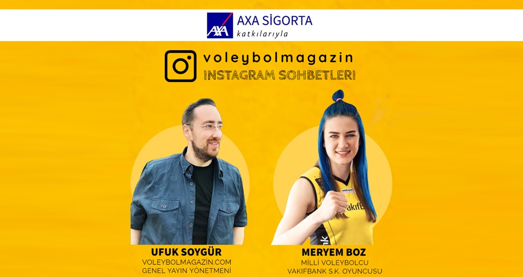 AXA Sigorta’nın katkılarıyla, Ufuk Soygür’ün hazırlayıp sunduğu @voleybolmagazin instagram canlı yayın sohbetlerinin bu haftaki konuğu VakıfBank’ın milli voleybolcusu Meryem Boz.