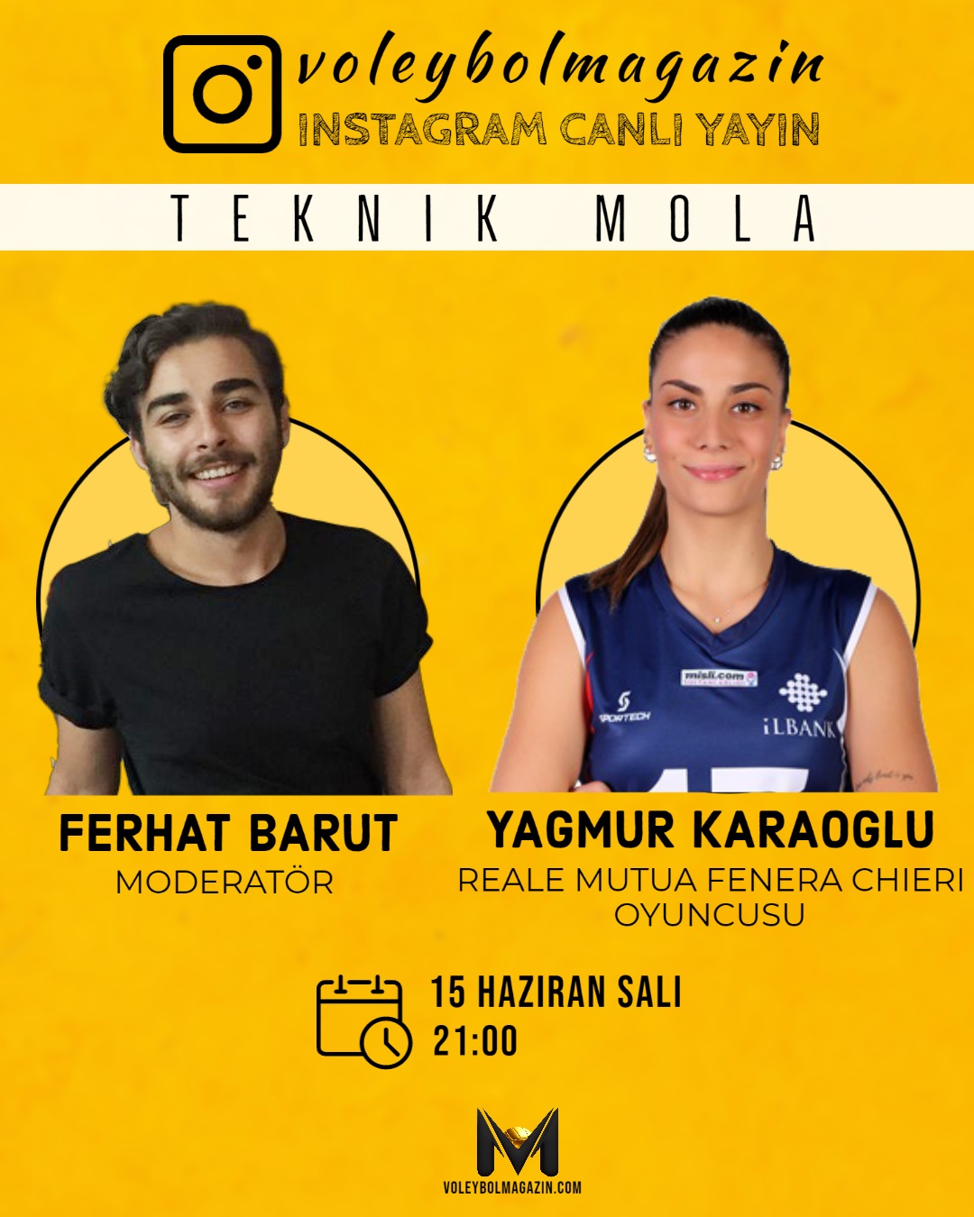 Yeni sezonda İtalya’nın Reale Mutua Fenera Chieri takımında forma giyecek olan yetenekli pasör çaprazı Yağmur Karaoğlu, @voleybolmagazin instagram hesabında yayınlanan Teknik Mola programına konuk olarak canlı yayında Ferhat Barut’un sorularını yanıtlayacak.