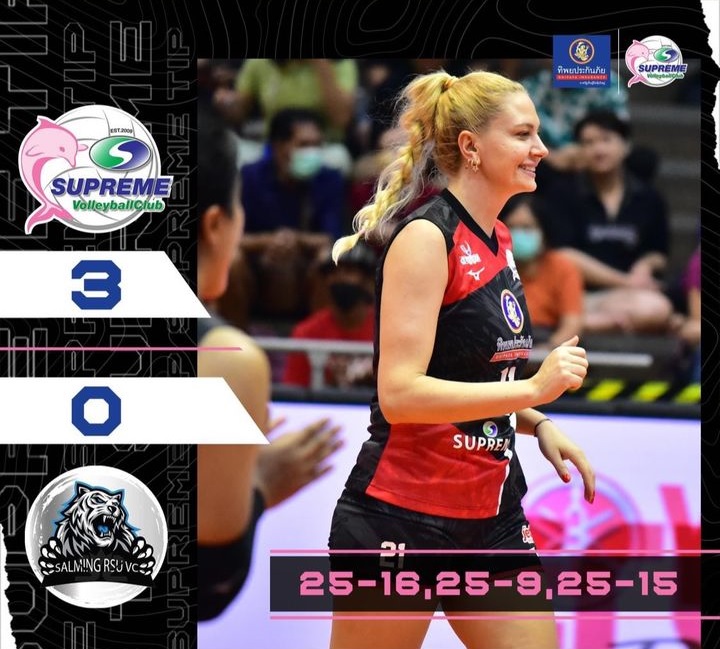 Tayland Ligi’nde tecrübeli pasör çaprazı Yeliz Başa’nın forma giydiği Supreme, rakibi Salming RSU’yu 25-16, 25-9 ve 25-15’lik setlerle 3-0 mağlup etti.