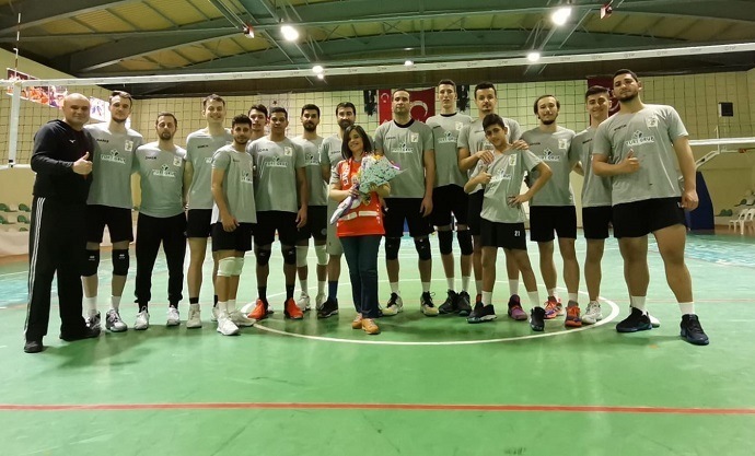 Takımın Başantrenörü Güntaş Yılmaz, karşılaşma için İstanbul’dan Erzin’e gelen Yurt Grup Kurumsal İletişim Yöneticisi Esra Zeynep Özenir’e çiçek takdim edip üzerinde ismi yazan forma hediye etti.