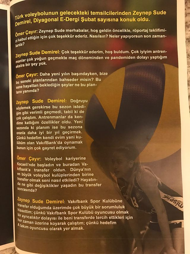 Son olarak Misli.com Sultanlar Ligi takımlarından Sistem9 Yeşilyurt’ta forma giyen orta oyuncusu Zeynep Sude Demirel, Diyagonal E-Dergi Şubat sayısına konuk oldu.